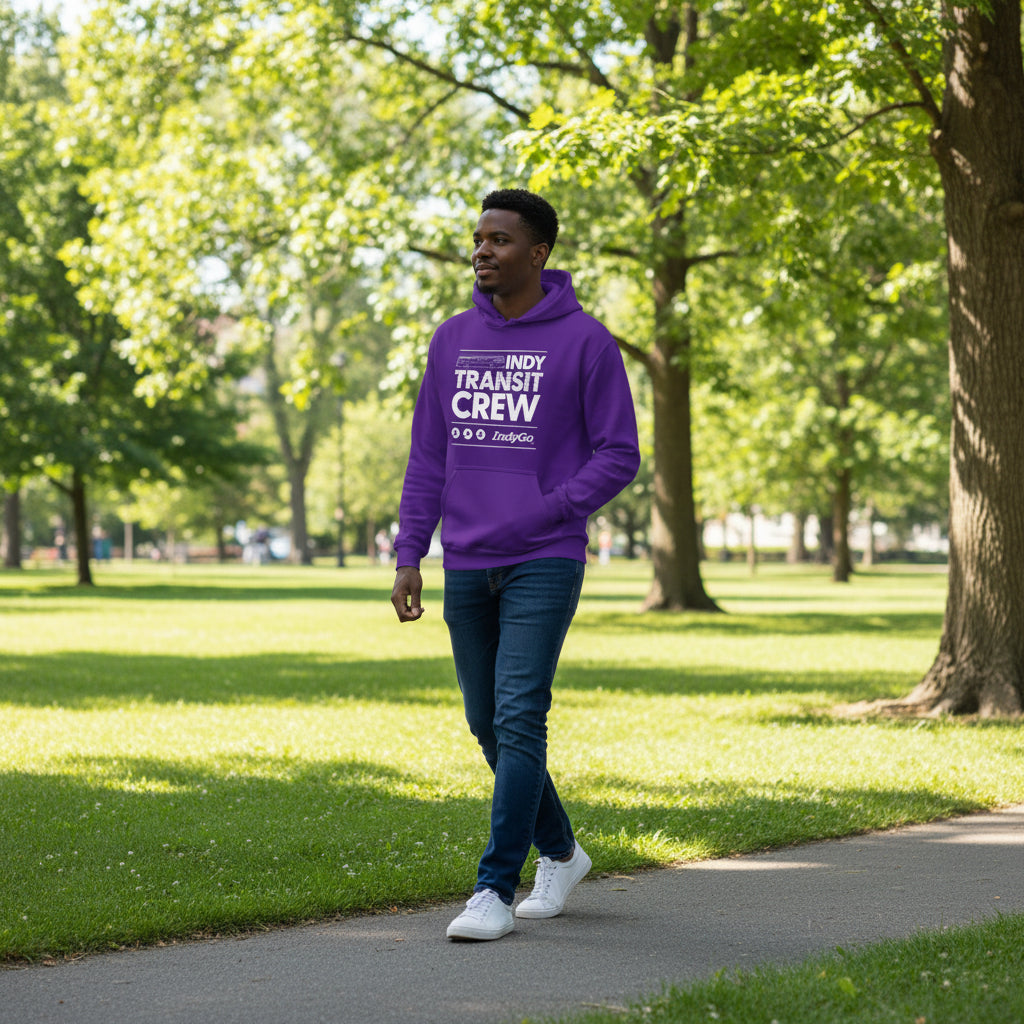 Show up for public transit in serious style. This bold hoodie sweatshirt features the Indy Transit Crew emblem in a graphic-forward layout that’s made to stand out. It’s built for community members, riders and anyone who believes in better mobility for all. Wear it as a statement, a badge or a show of solidarity with the city that keeps moving.